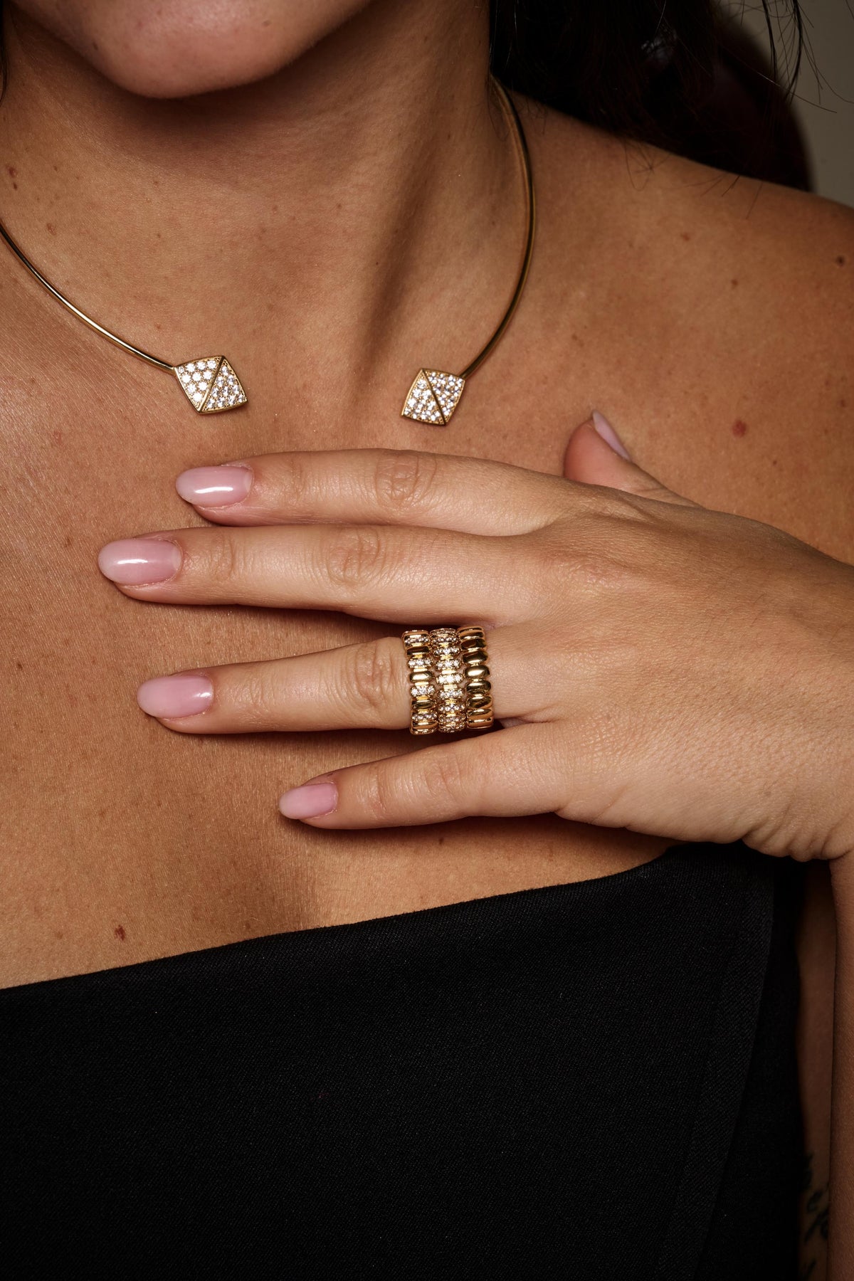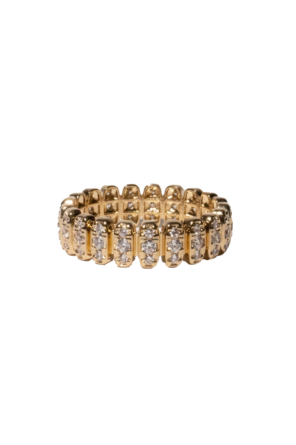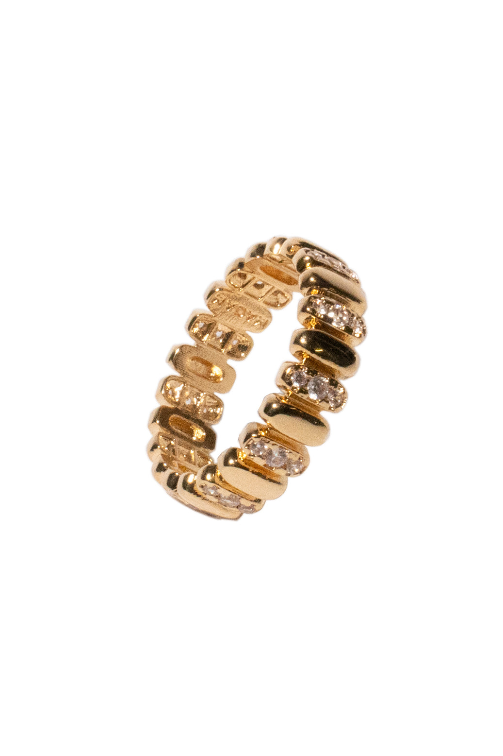 Anello con design a fascia ondulata ricoperto di zirconi.
