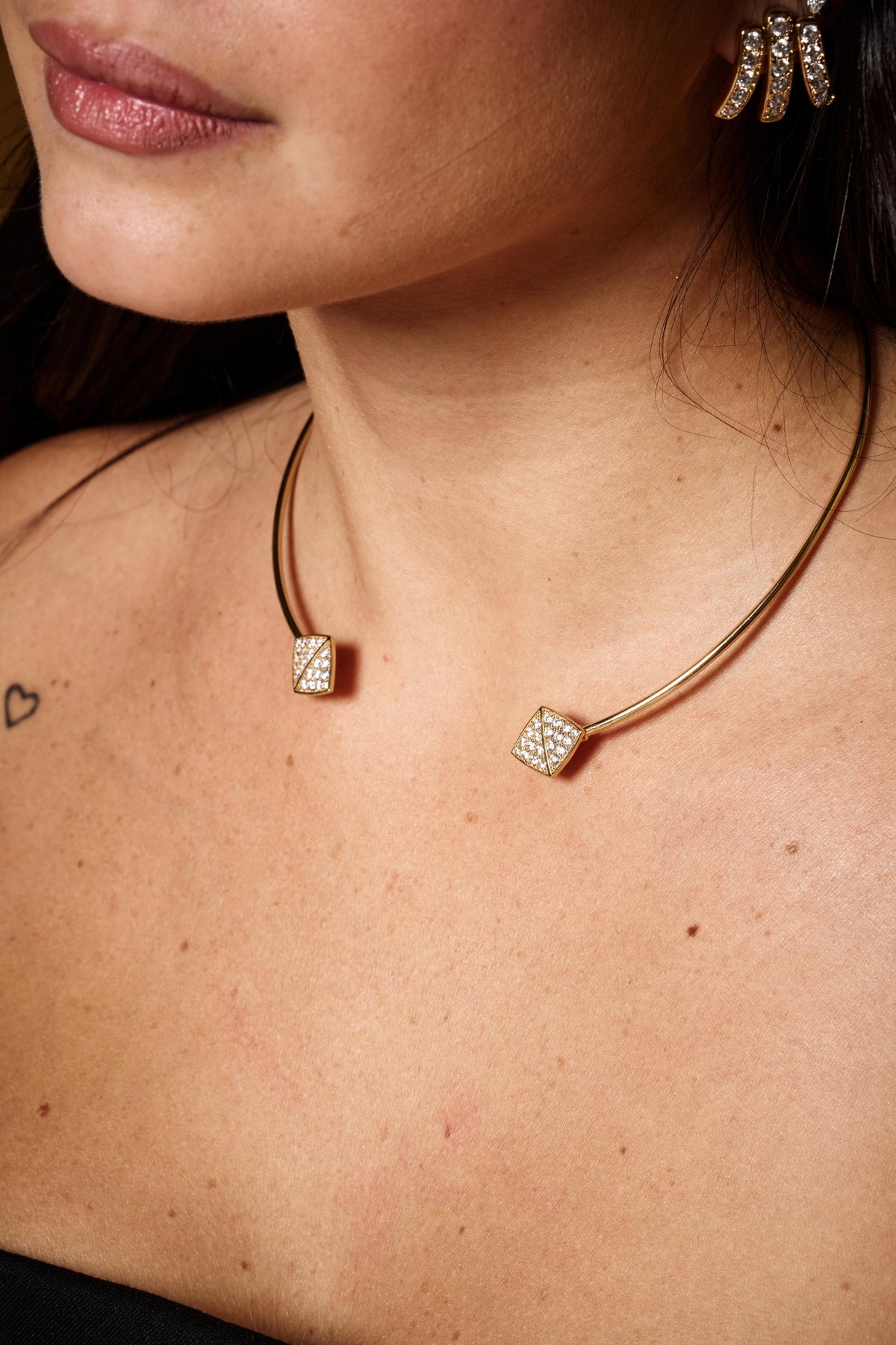 Girocollo rigido modellabile per una vestibilità personalizzata, con rombi impreziositi da pavé di zirconi luminosi.