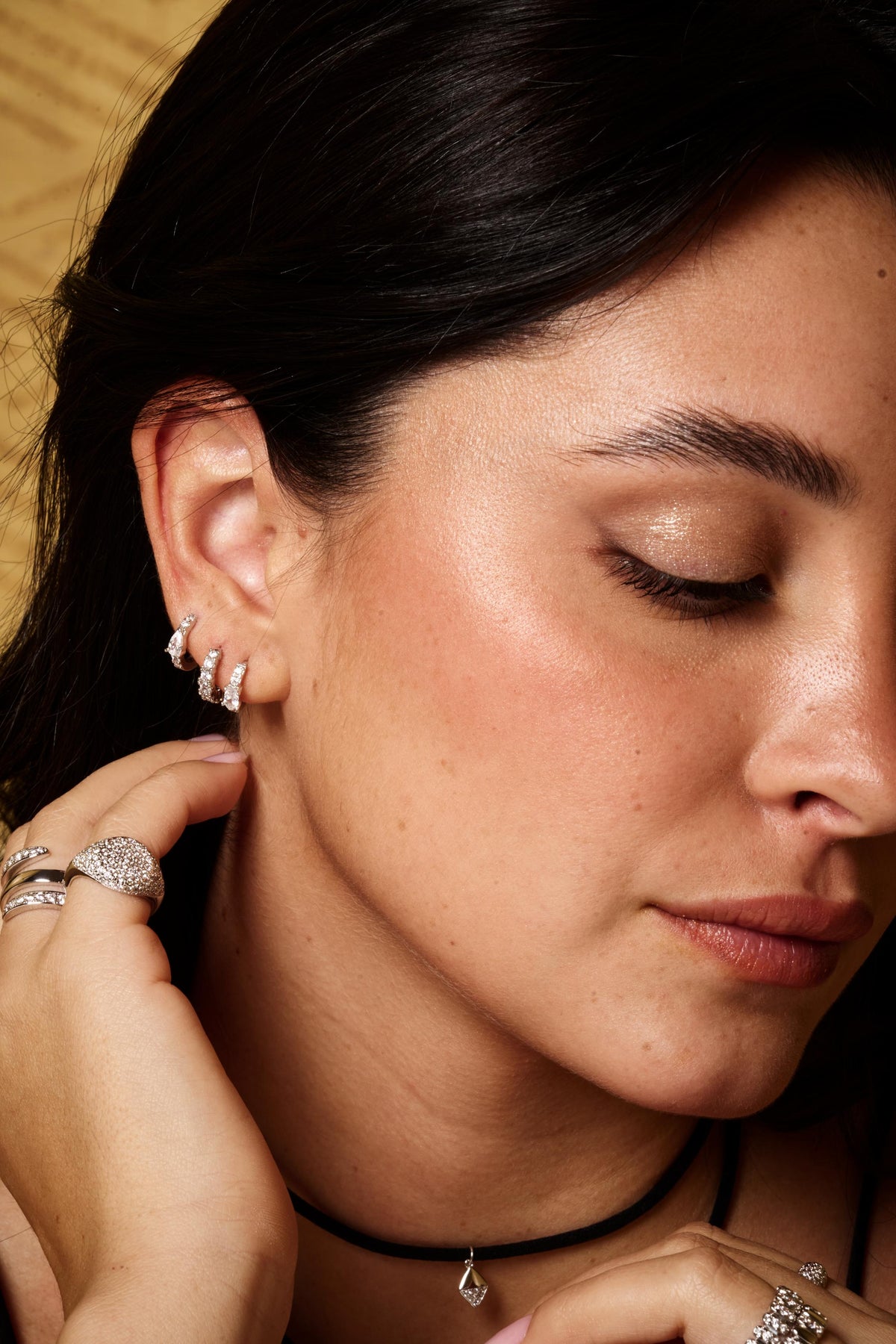 Monorecchino a cerchio impreziositi da zirconi luminosi e pietre centrali.