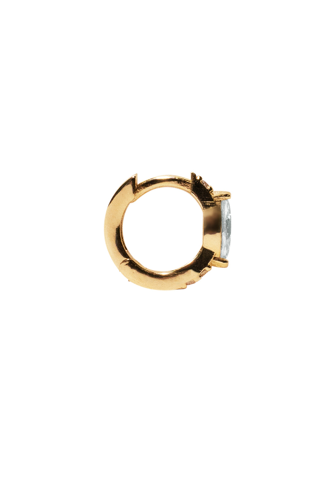 Monorecchino a cerchio impreziositi da zirconi luminosi e pietre centrali.