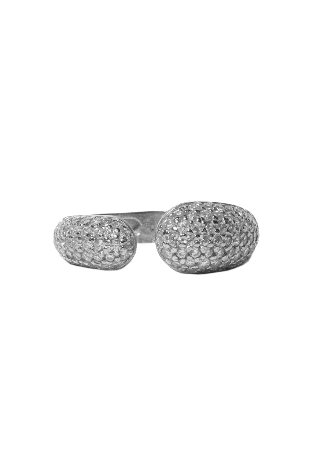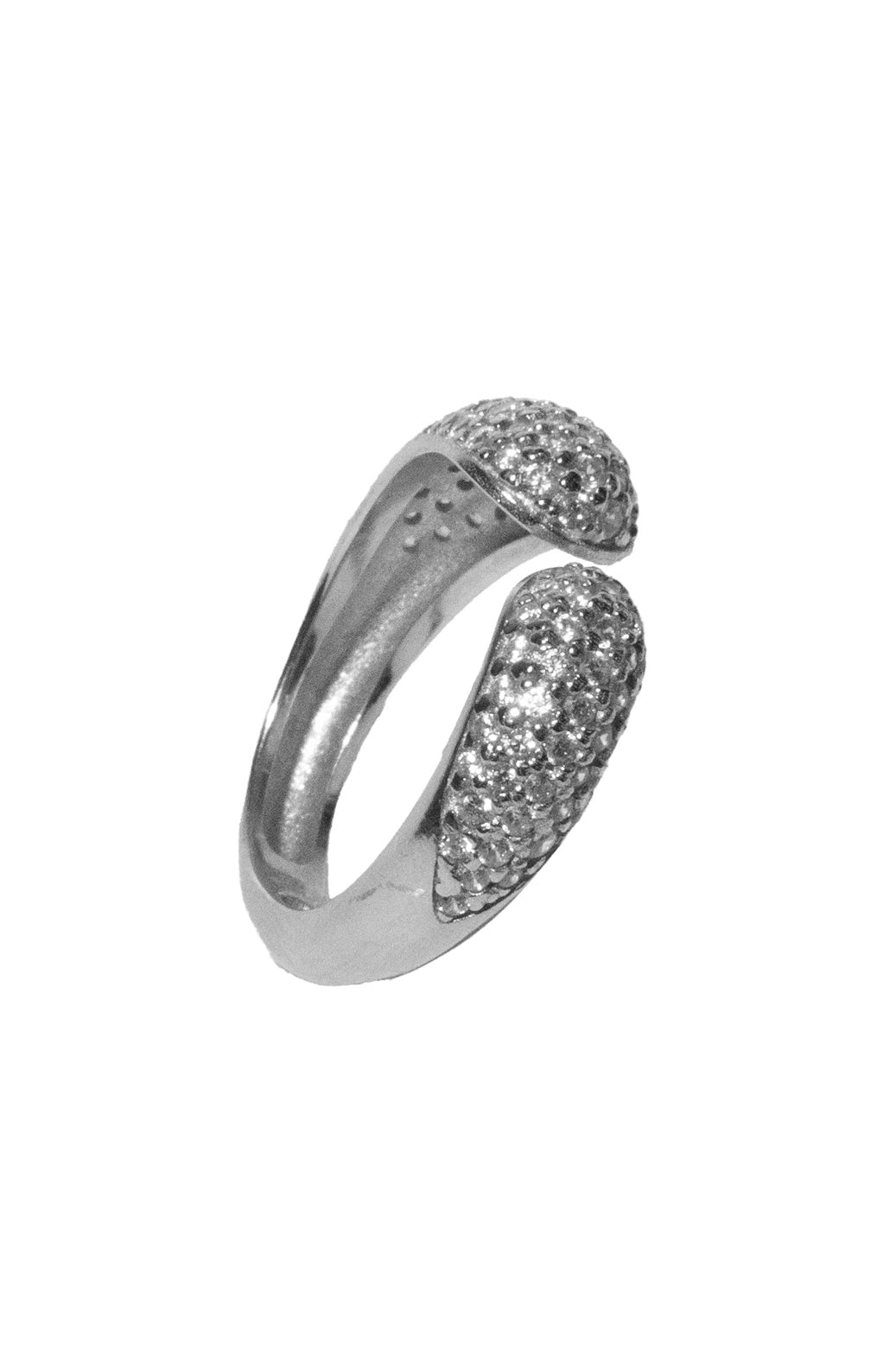 Anello aperto con zirconi bombato, regolabile.