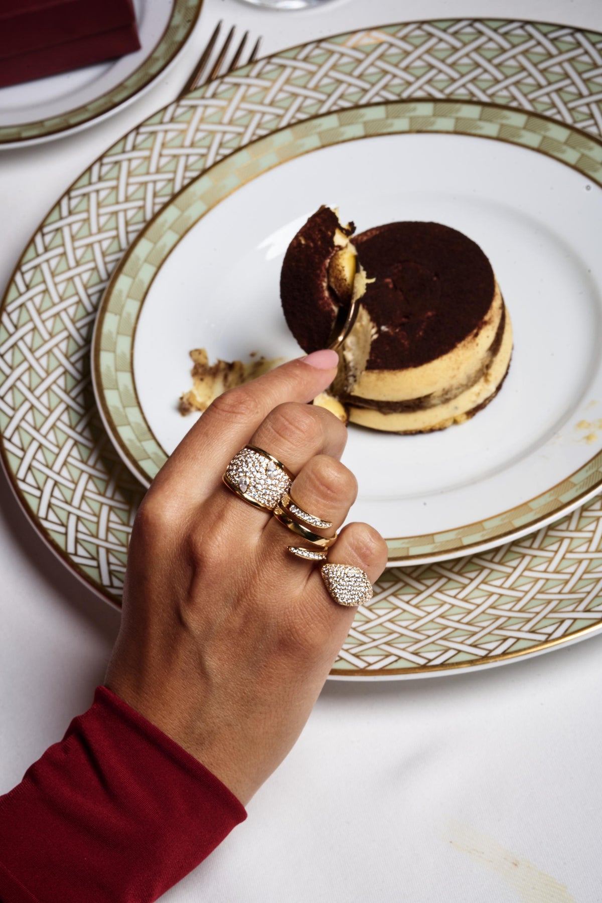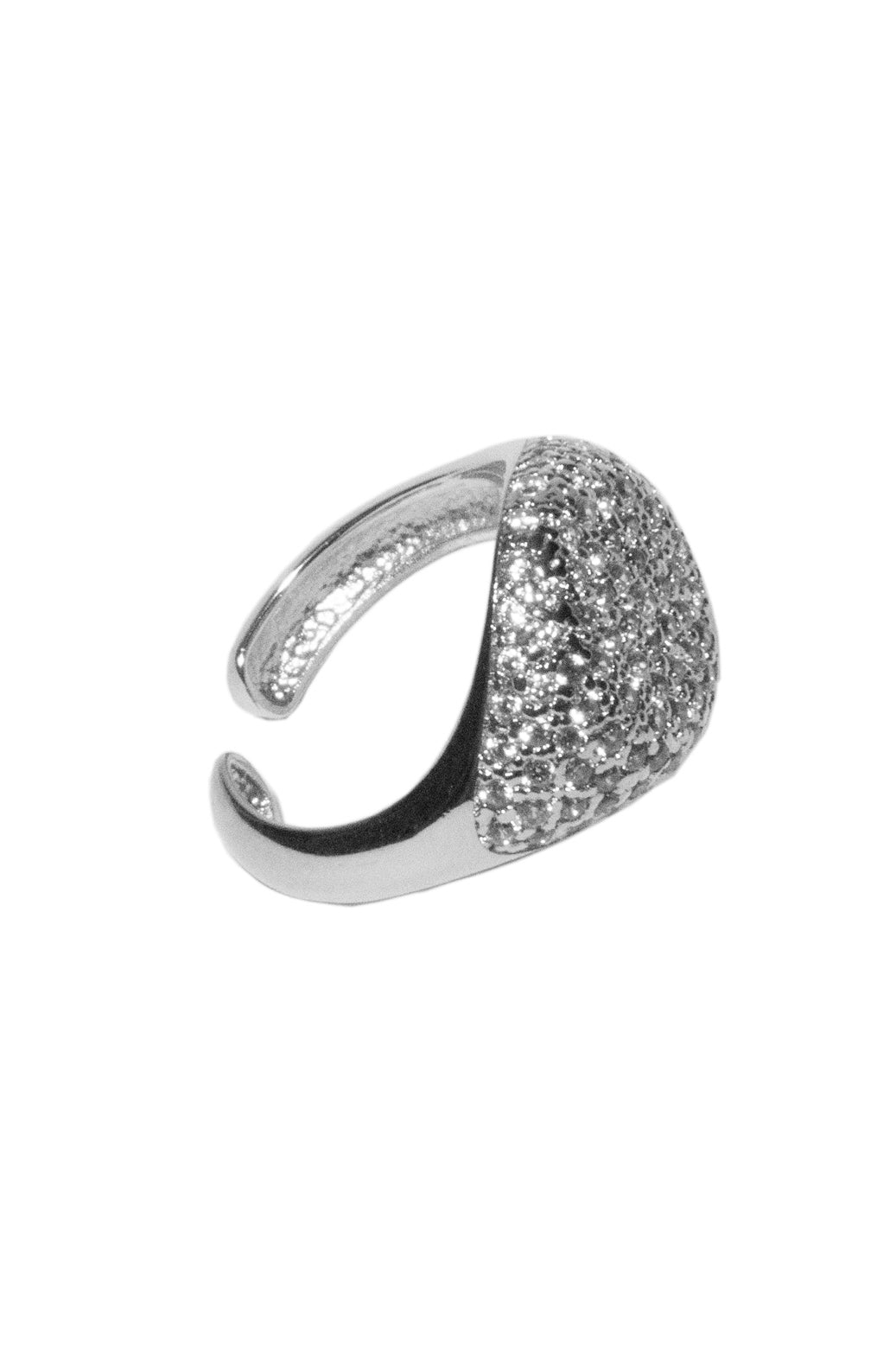 Anello mignolo con superficie bombata interamente pavé di zirconi.