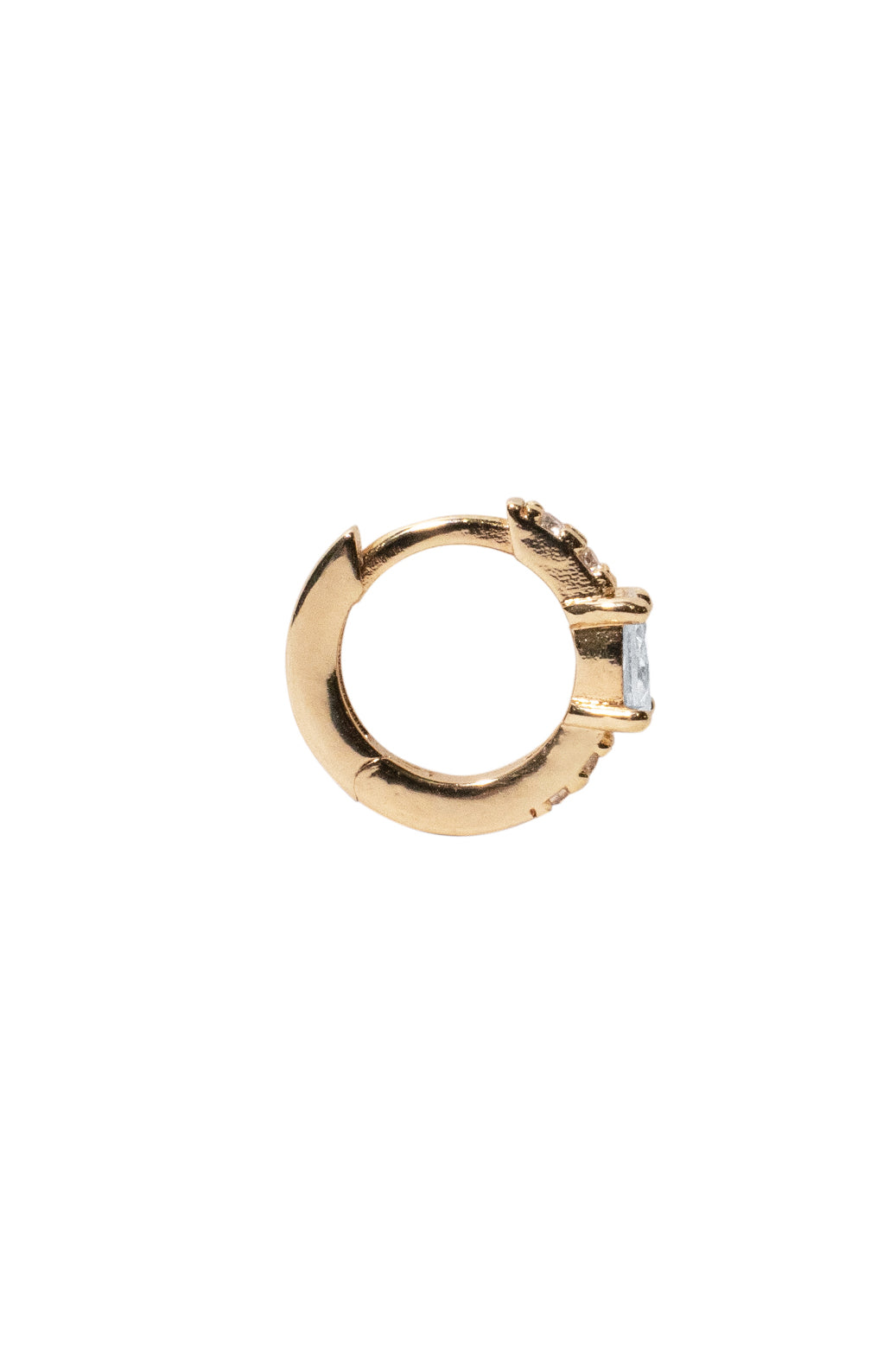 Monorecchino a cerchio impreziositi da zirconi luminosi e pietre centrali.